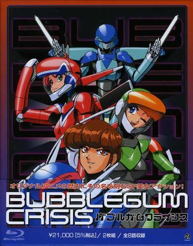 「バブルガムクライシス(Bubblegum Crisis=泡泡糖危機)」是1987年到1991年間發行的全8卷的OVA系列,是以美少女穿上機械戰鬥裝為賣點的科幻動畫。這部作品在台灣很冷門,但在歐美地方卻是日本動畫打入海外市場的重要作品之一。泡泡糖危機這名字聽來怪異,甚至初期標題打算就只叫Bubblegum(泡泡糖)而已。意思其實是形容世界像泡泡糖充滿張力隨時爆破,而有四名少女就在這充滿緊張感的社會中展開冒險。